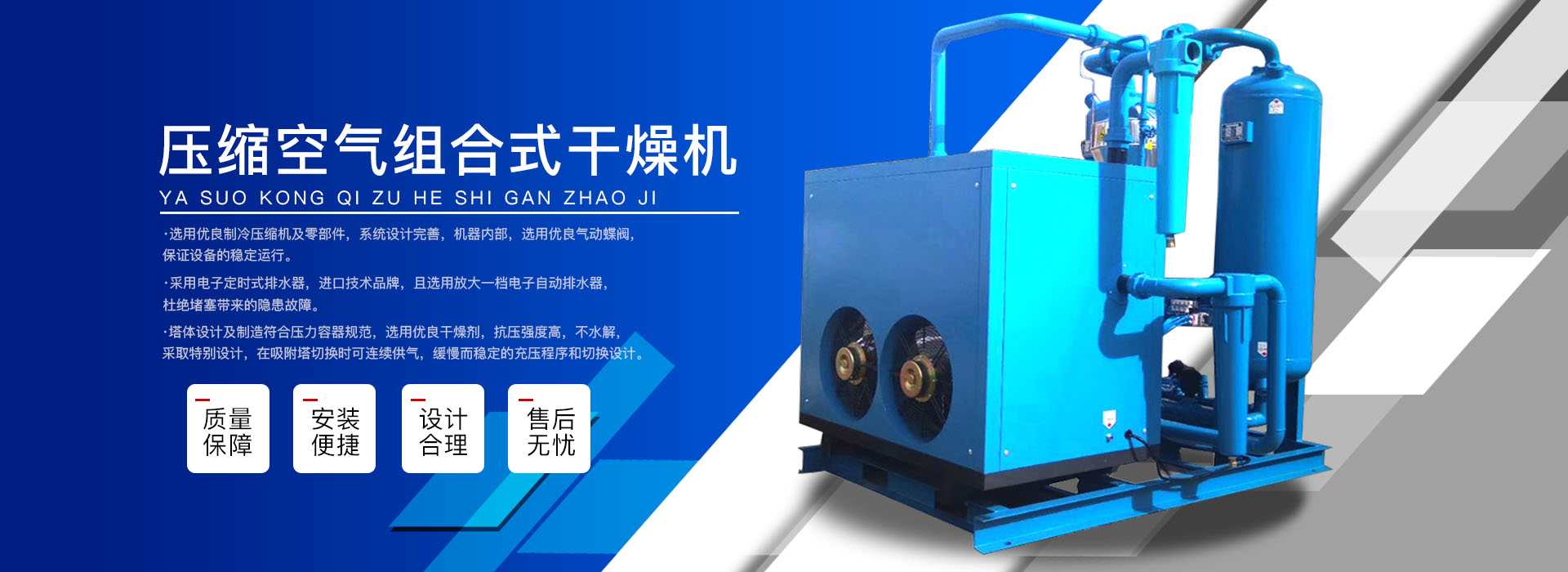 本公司系中國科學院、重鋼院、機電技術設計院、氣動技術研究所等相關專家合作的具有雄厚技術力量的高科技實體,是一個專業從事各種氣體干燥凈化及分離純化設備研究開發及推廣應用的高科技公司。公司積多年對壓縮空氣凈化設備的生產技術和銷售經驗,并在消化吸收國外先進技術的基礎上,結合國內實際工況特點,研制出適合國內外廣大用戶的“滬盛”牌HSD系列壓縮空氣冷凍式干燥機、吸附式干燥機、后部冷卻器、預冷機組、工業用冷水機組和HF系列壓縮空氣高效精密過濾器(國產濾殼,美國漢克森HANKISON濾芯)等13大系列計300多種規格產品。并且新研發出燥式干器, 廣泛應用于電力、冶金、電子、機械、石油、化工、汽車制造、紡織、化纖、輕工、造紙、橡膠、儀表、食品、空氣、卷煙、生物、醫藥、日化等行業,在國內同行業中一直處于領先地位。